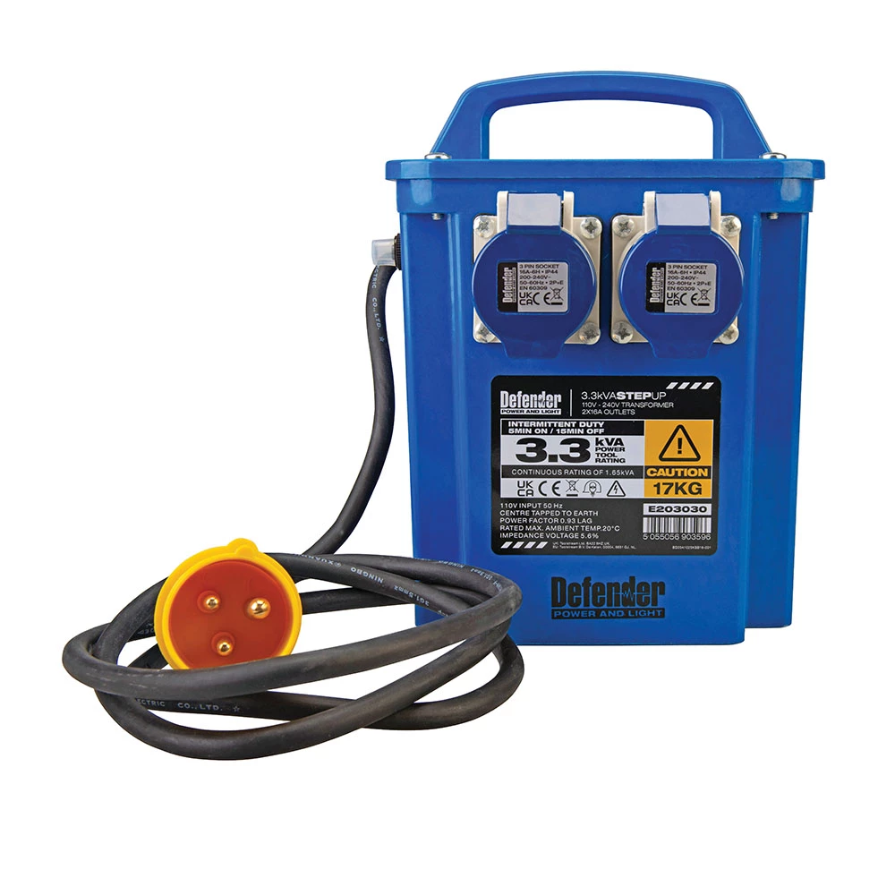 Enables operation of 240V 16A tools by attaching to a 110V circuit