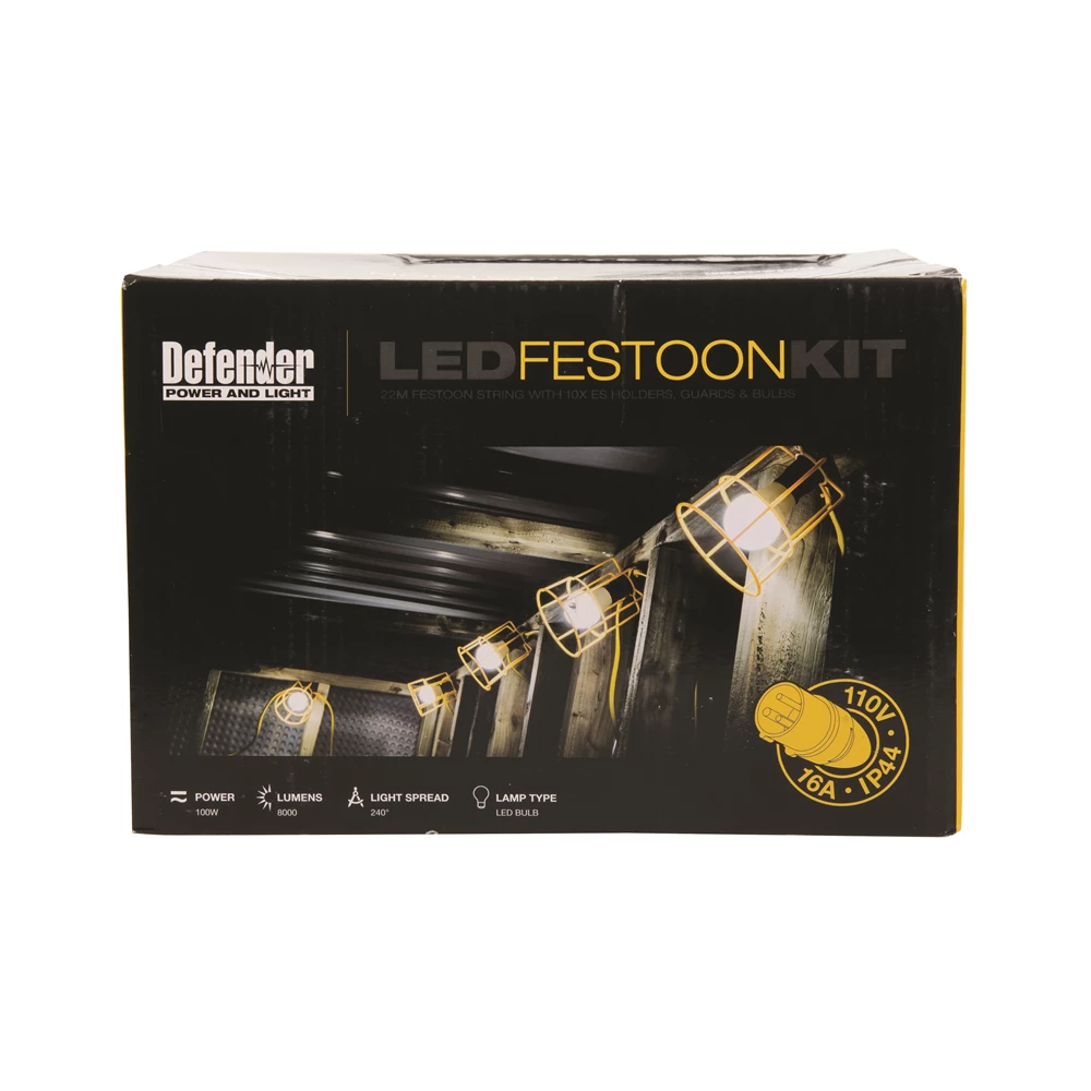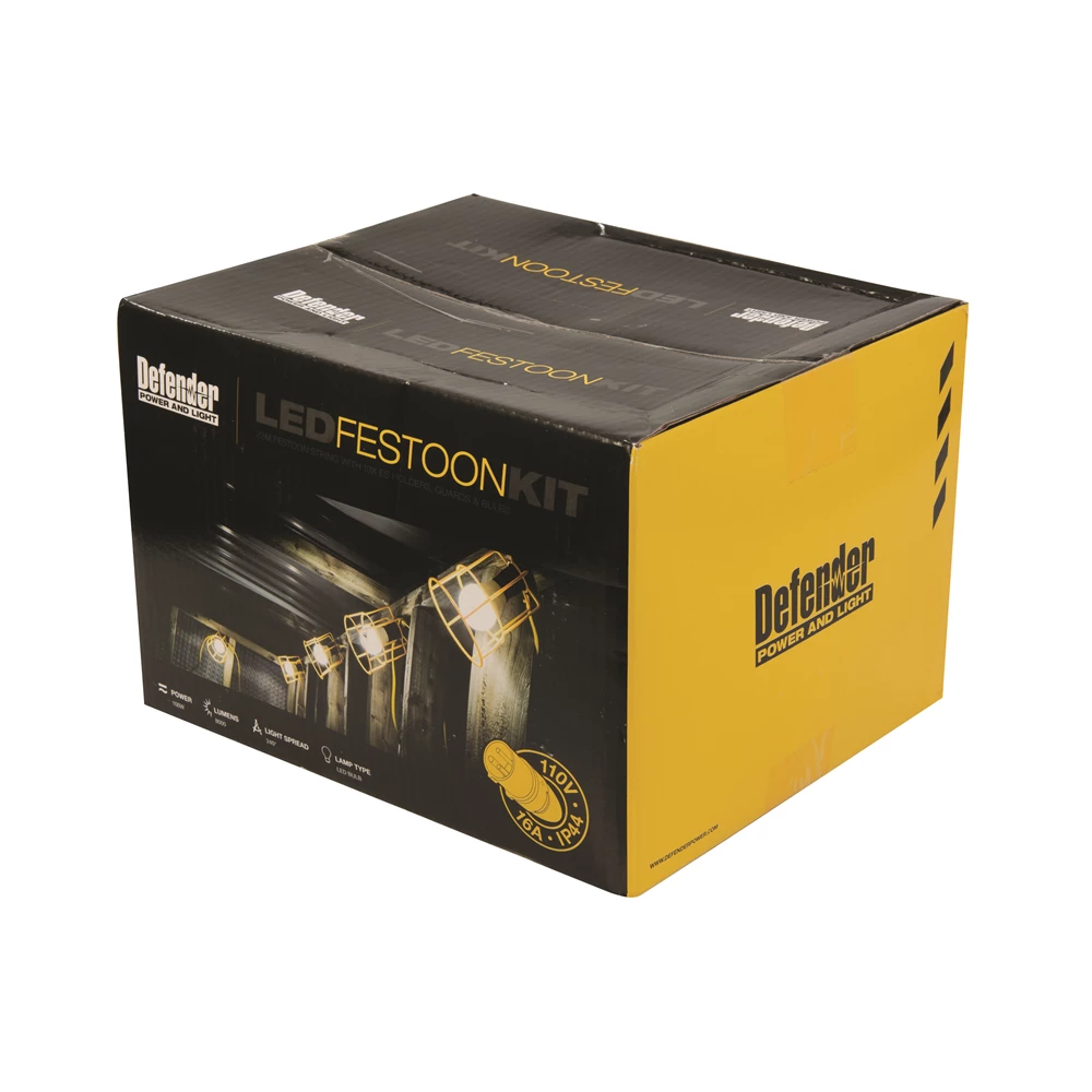 - Traditional-style festoon with fitted LED ES 10W bulbs & guards