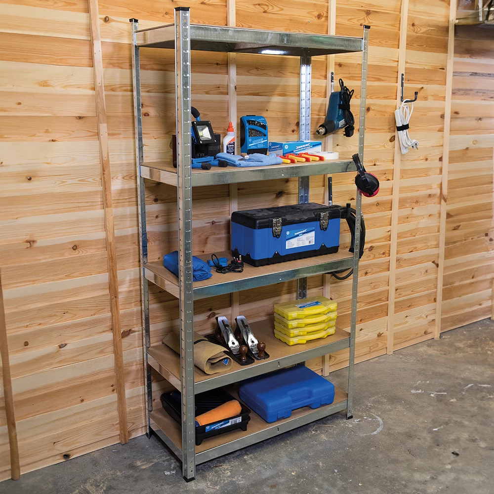 Galvanised steel frame with 5 x 5mm MDF shelves