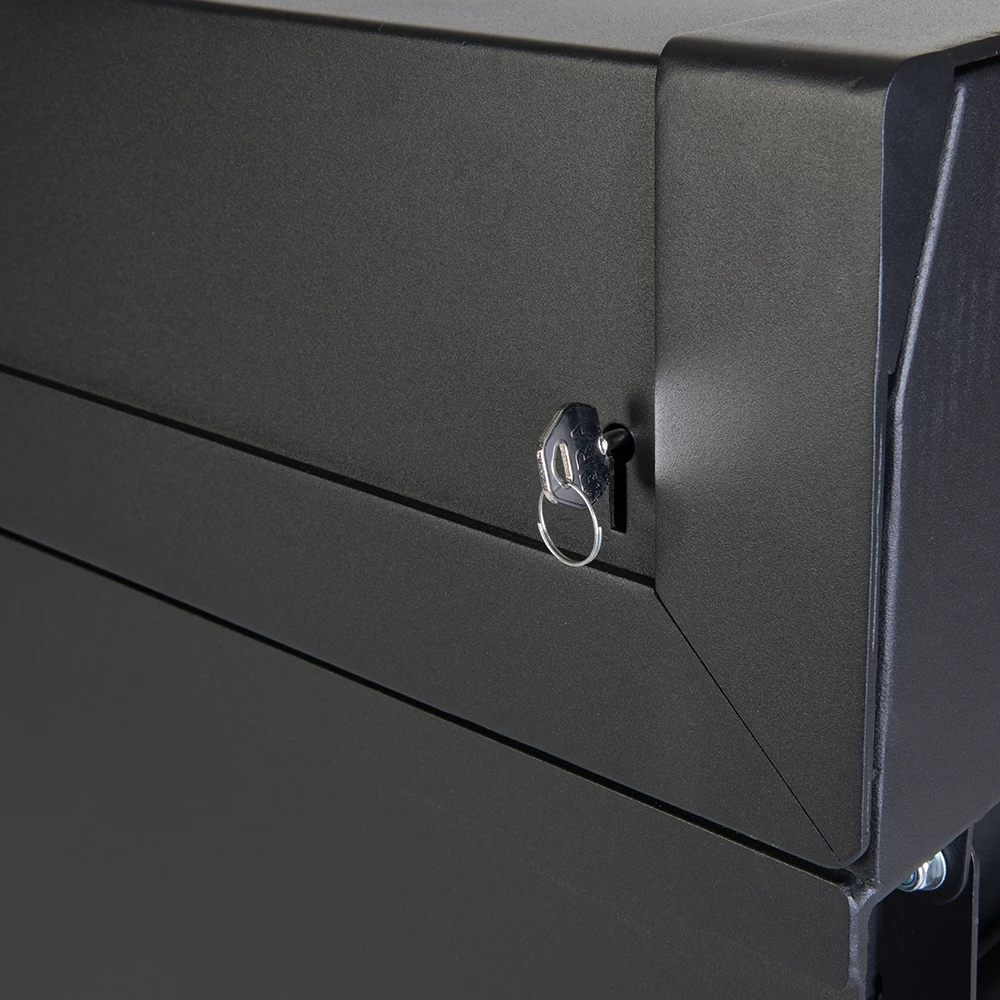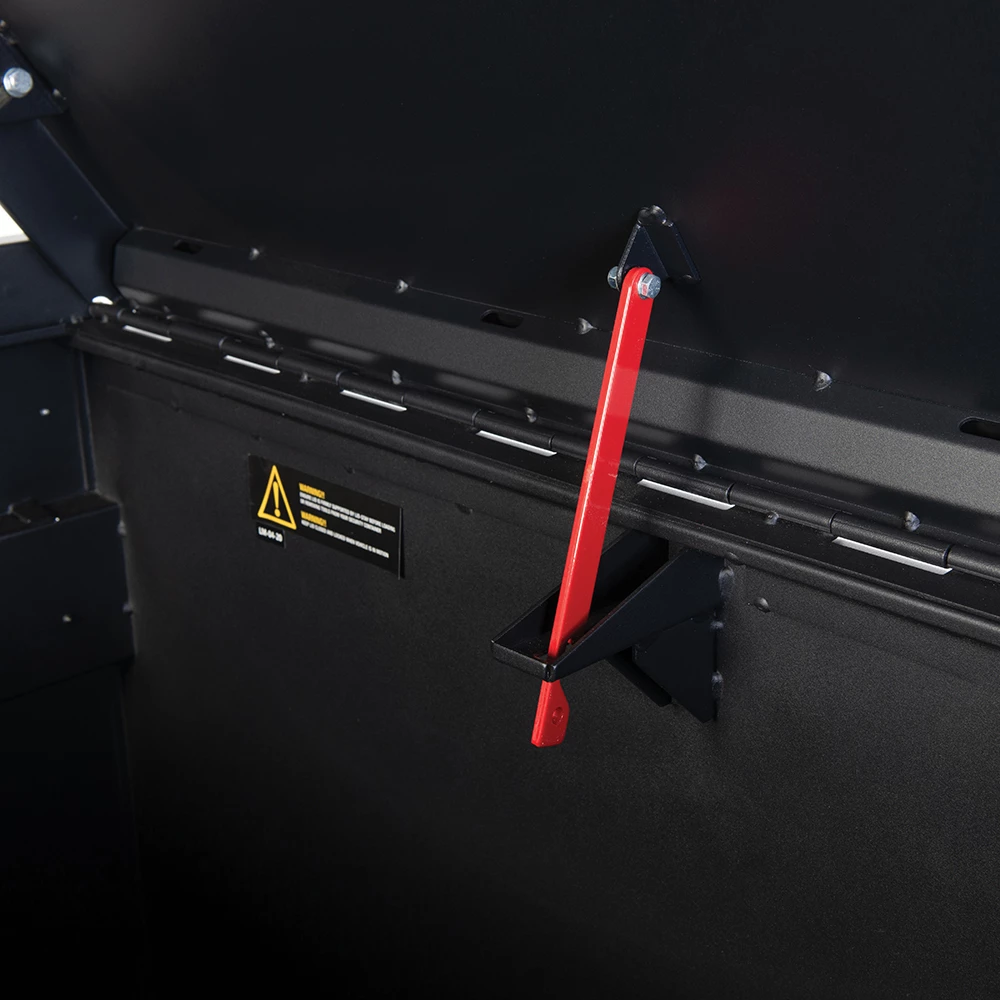 - Anti-theft 2-point locking system, single pin hinge & solid lock 'lid stay' system
