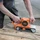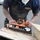 - Rear-facing dust port connects to the supplied dust bag or a dust extraction system