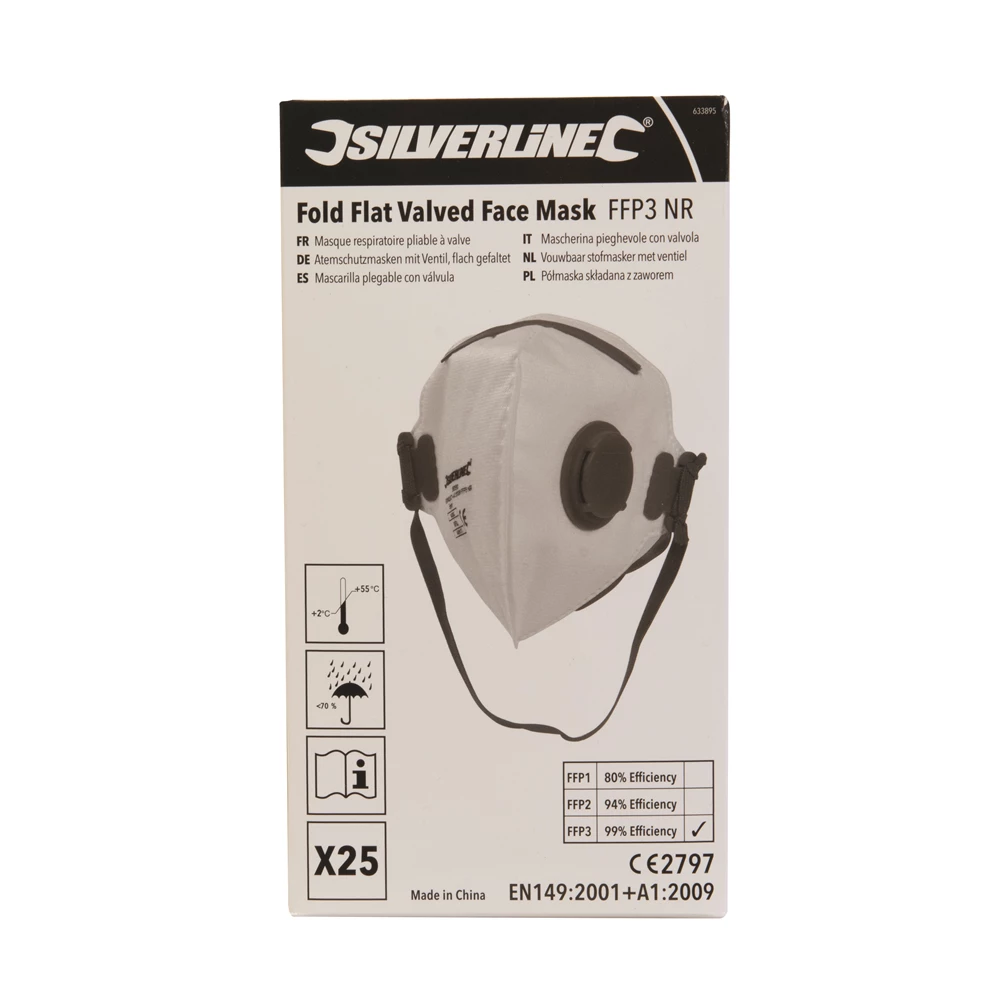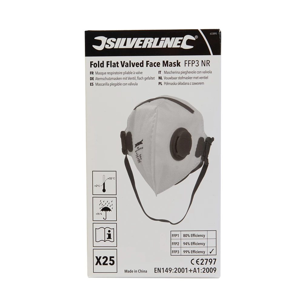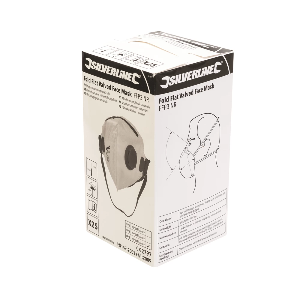 Silverline Fold Flat Valved Face Mask FFP3 NR Display Box 25pk