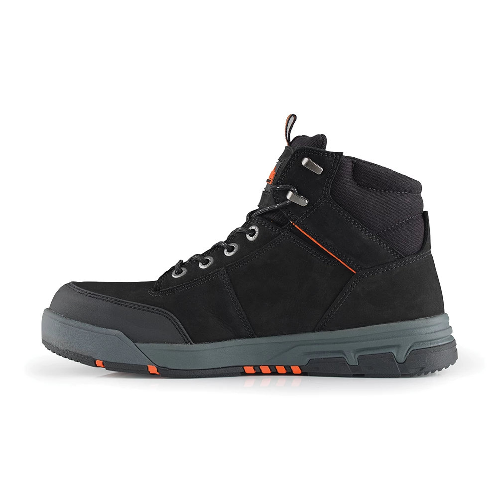- High spec S3 anti-static mid-ankle safety boot with nubuck leather, water-resistant upper